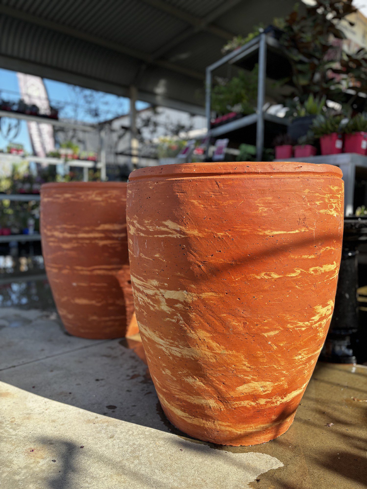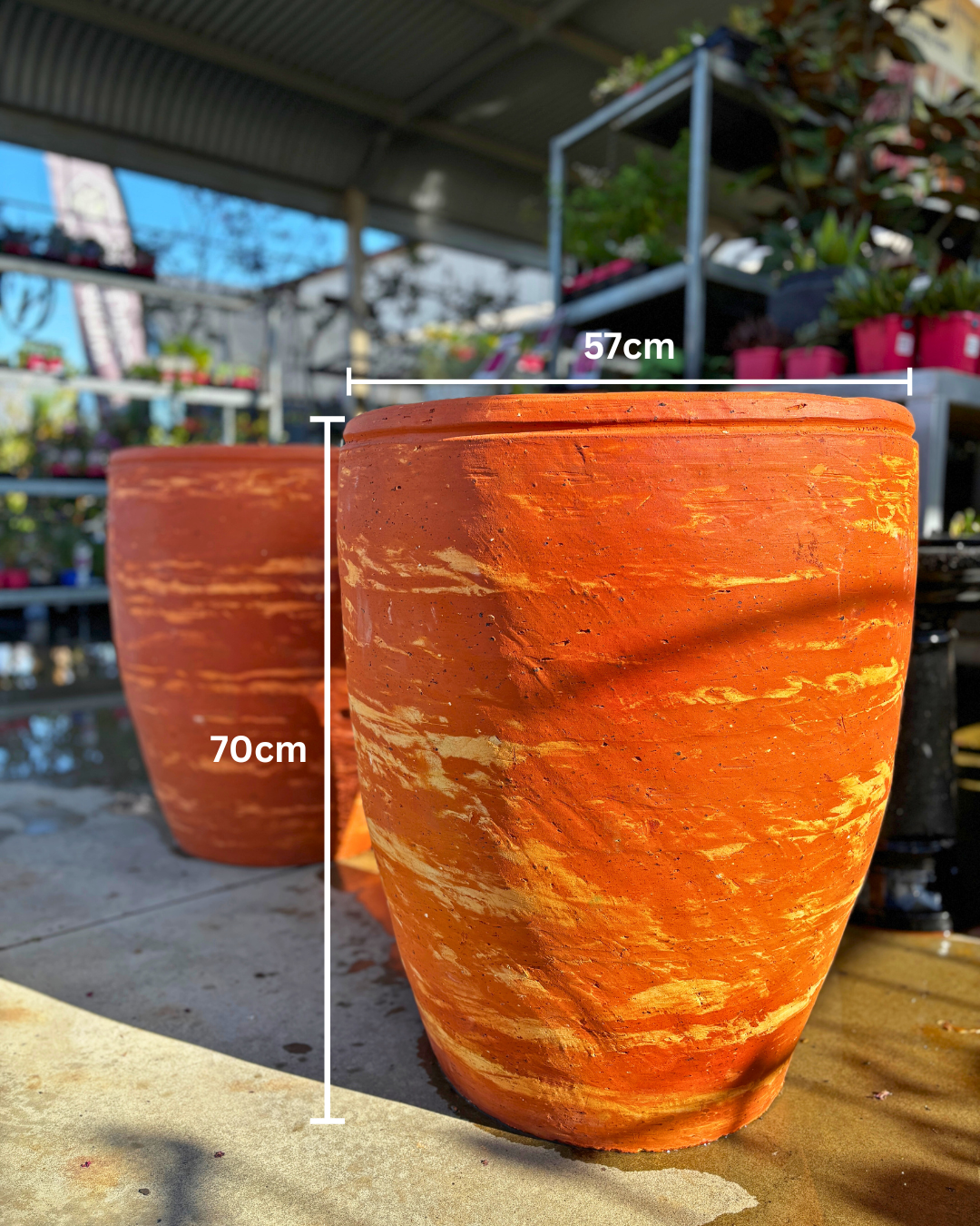 Barrel Tiger Pot: Hand made, 57 x 70cm, drainage hole