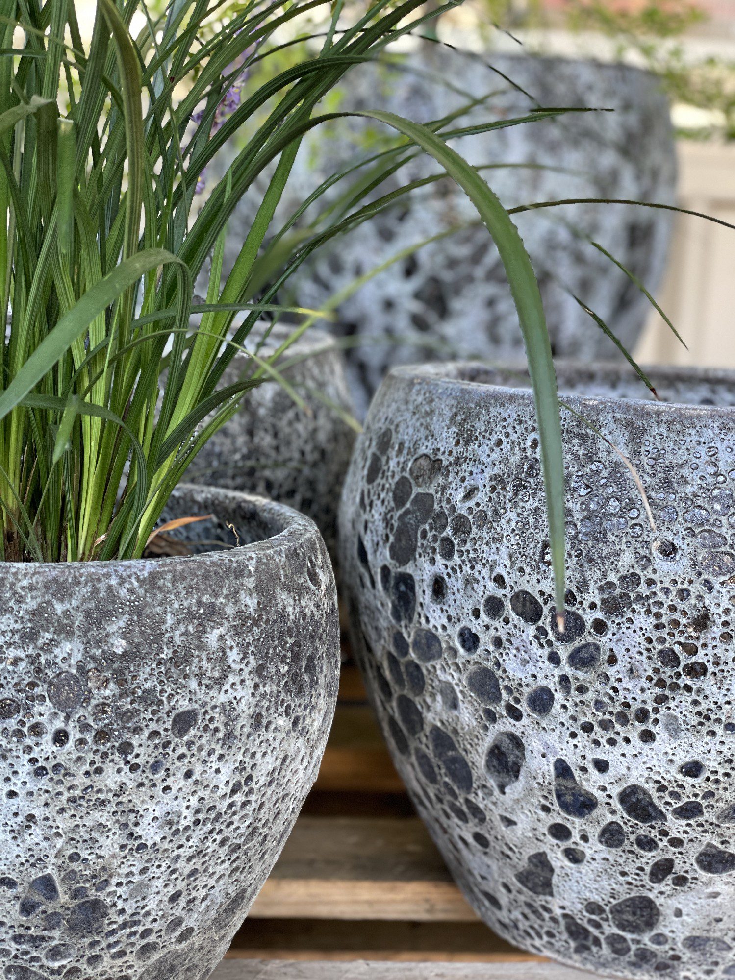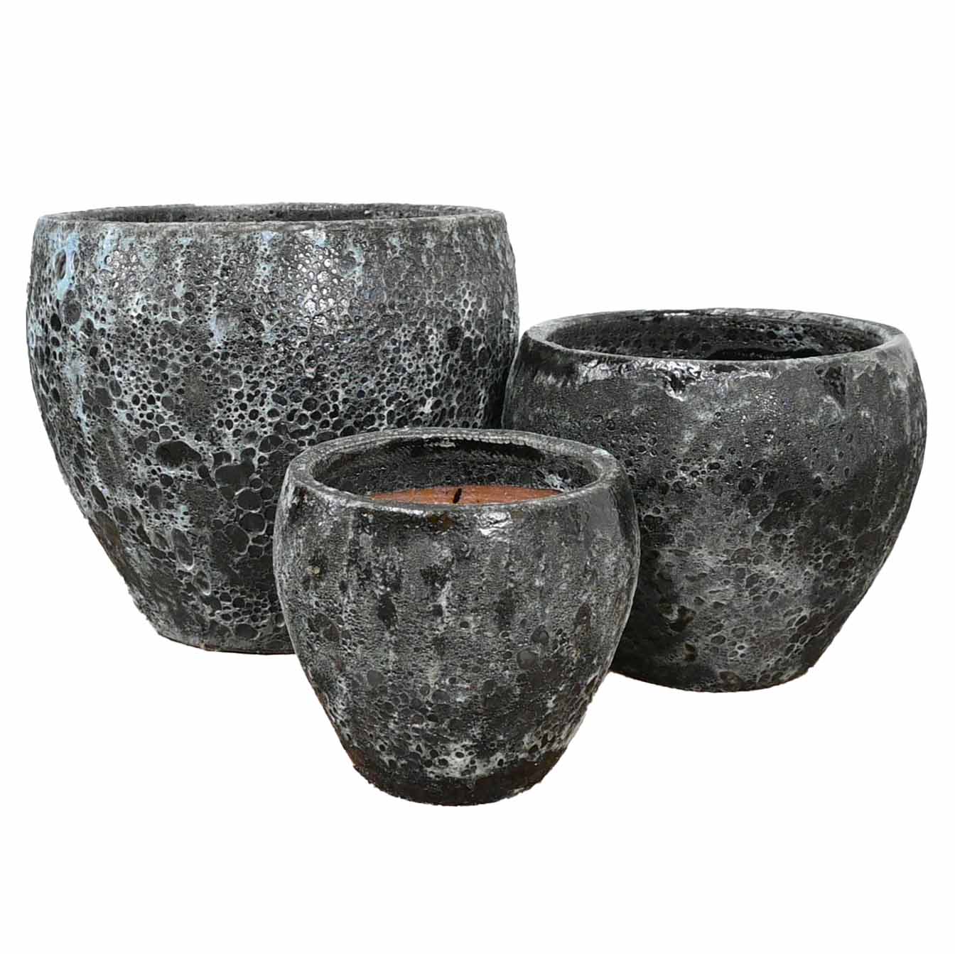 High-fired Earthenware pot with unique variable and textured finish.